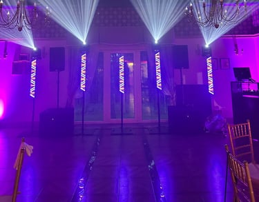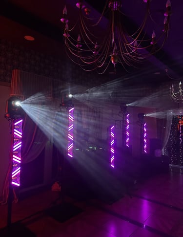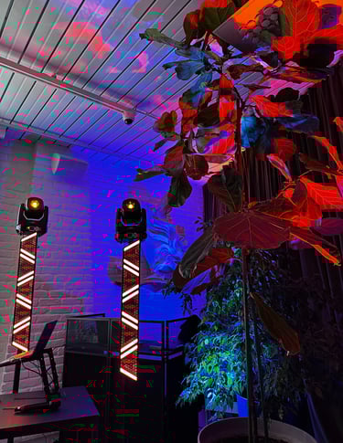 Apšvietimo sprendimai: Siūlome įvairius apšvietimo sprendimus, kurie sukurs ypatingą atmosferą. LED apšvietimas, spalvų keitimas, dinamiškas apšvietimas šokiams – viskas, ko reikia jūsų renginio atmosferai sukurti.