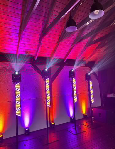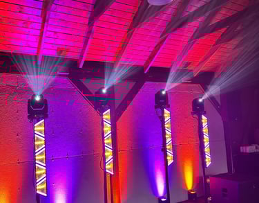 Suteikite savo renginiui daugiau spalvų ir įspūdžio! Siūlome įgarsinimą su dviem kolonėlėmis bei papildomą aplinkos apšvietimą. Šviesų efektai kurs ypatingą atmosferą jūsų šventei!