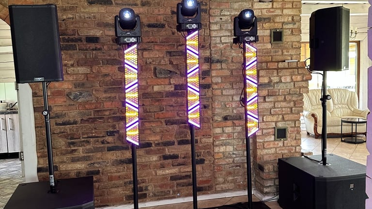 Ieškote paprasto ir efektyvaus sprendimo savo šventei? Suteikiame profesionalų įgarsinimą su dviem kolonėlėmis ir šviesų efektą, kuris nuspalvins šventę įvairiomis spalvomis. Paprasta, kokybiška ir užtikrinta gera atmosfera!